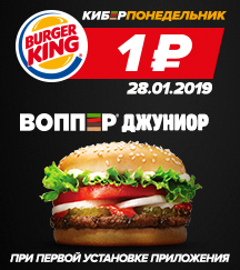 Киберпонедельник в Burger King — только 28 и 29 января! Воппер® Джуниор за 1р.!